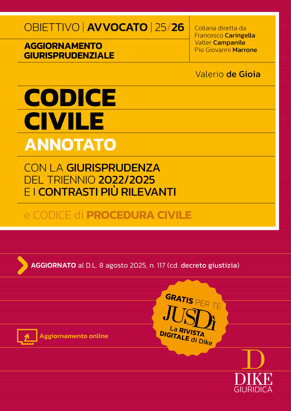 Il Codice Civile Annotato per l’Esame di Avvocato 20252026 con Aggiornamento giurisprudenziale è annotato con le massime della giurisprudenza di legittimità, e pone una particolare attenzione alle pronunce più importanti e significative dell’ultimo triennio, rappresentando un utile aggiornamento giurisprudenziale per tutte le edizioni precedenti dei codici annotati in commercio.