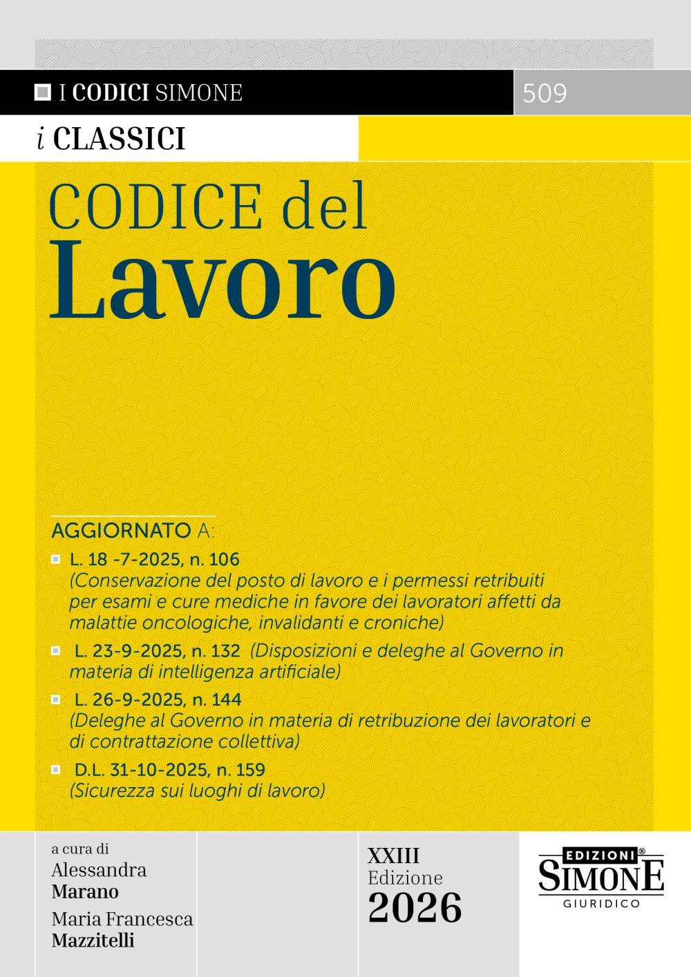 Codice del lavoro 23ed. 2026 – 509 Marano